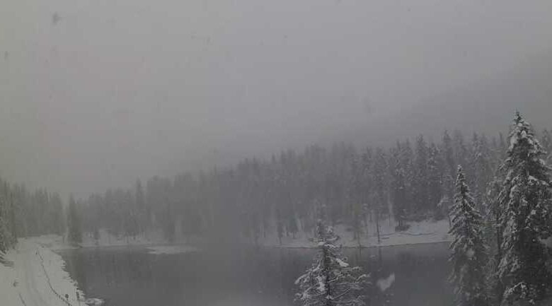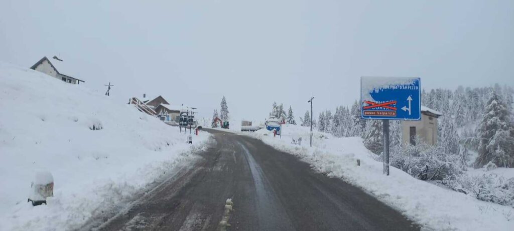 Il calo termico ha portato la neve sulle Dolomiti: oltre 60cm sul Monte Rite. Passi transitabili