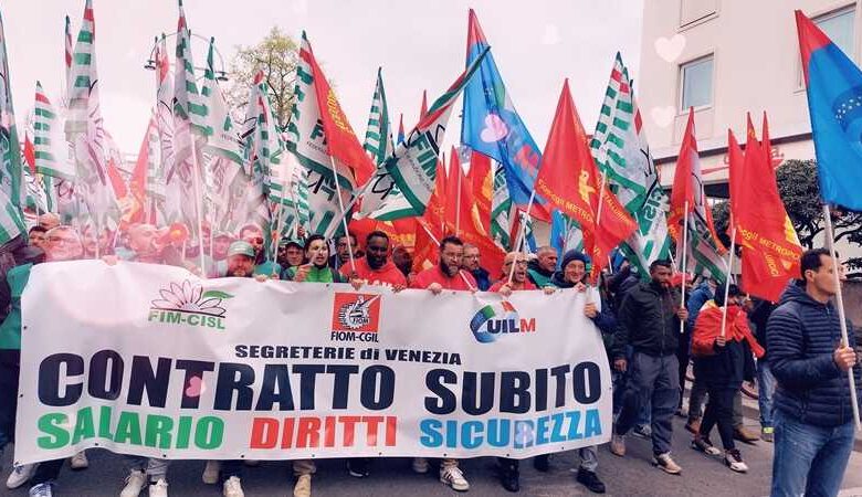 Hanno partecipato a Mestrea oltre 1.500 lavoratori e lavoratrici allo sciopero per il rinnovo del contratto dei metalmeccanici