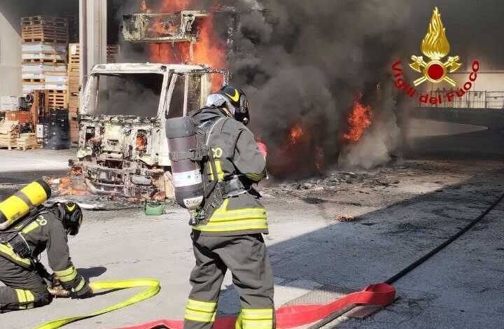 Pare che il rogo sia divampato mentre il personale era impegnato nelle operazioni di carico e scarico: prima si è sprigionato del fumo, seguito rapidamente dalle fiamme, che hanno avvolto l’autocarro.