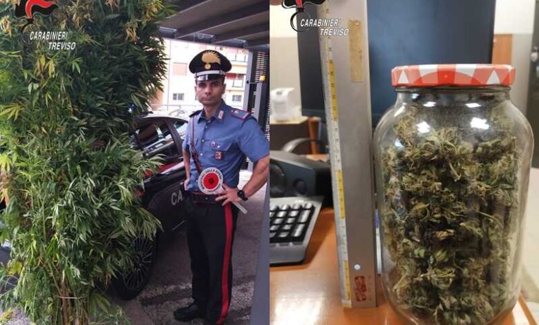 L’altro giorno, mentre stava tranquillamente innaffiando la sua bella piantagione di marijuana, è stato sorpreso dai militari della Stazione di Susegana.