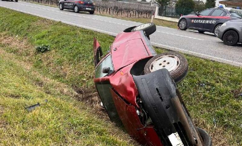Inseguimento terminato con il 20enne finito fuori strada a Maserada, sull’auto rubata.