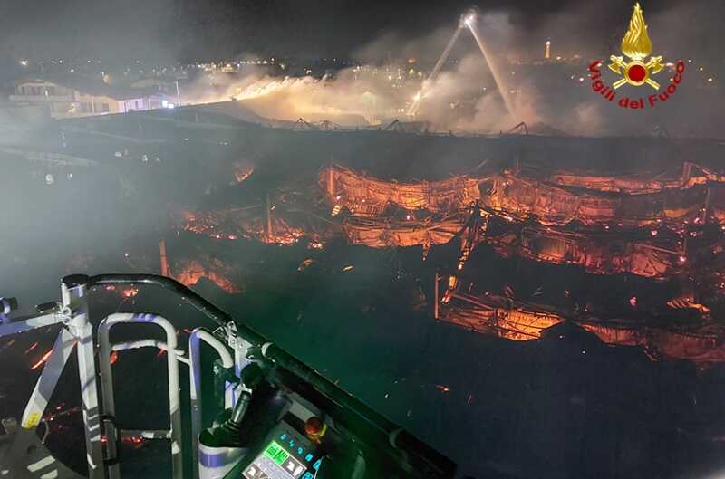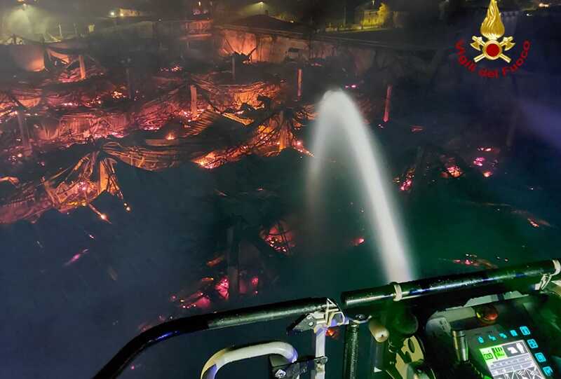 Spento l’incendio e messe in atto le misure per una prima messa in sicurezza; rimane attivo, almeno fino alle ore 20.00 di questa sera, un presidio che provvederà al raffreddamento delle strutture incendiate e alla bonifica di eventuali focolai.