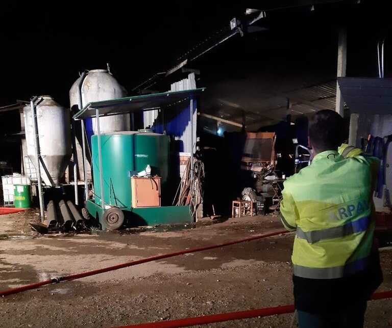 Nessun problema alle bestie ricoverate in stalla. Precauzione per la copertura in amianto andata a fuoco.