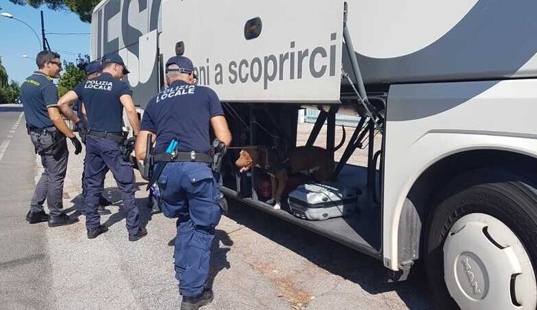 Agenti della Polizia locale, Guardia di Finanza, Carabinieri e Polizia di Stato hanno effettuato una serie di controlli a bordo degli autobus in arrivo a Jesolo.
