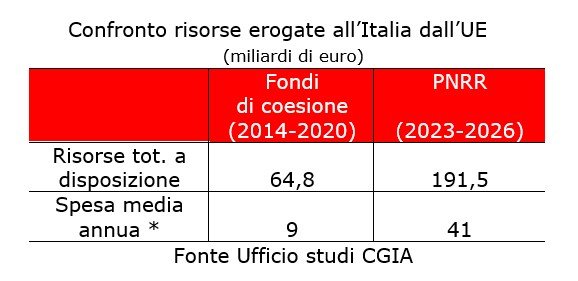 Sorpresi che, molto probabilmente, non riusciremo a spendere tutti i soldi previsti dal PNRR? L’Ufficio studi CGIA non lo è e questa “consapevolezza” trae origine da un assunto: la storica difficoltà del nostro Paese a utilizzare tutti i soldi che ci giungono da Bruxelles. In riferimento ai fondi di coesione, ad esempio, non sono pochi quelli riferiti al settennio 2014-2020 che, entro la fine di quest’anno, rischiamo di perdere, sebbene la spesa ipotetica annuale necessaria per mettere a terra tutte le risorse disponibili ammonti solo a 9 miliardi di euro. Affrontando con lo stesso approccio appena illustrato anche il PNRR, tra il 2023 e il 2026 dobbiamo spendere mediamente 42 miliardi di euro all’anno per poter realizzare tutti i progetti previsti dal piano. Una cifra, quest’ultima, 4,5 volte superiore alla precedente. E’ evidente che raggiungere questo obbiettivo sarà quasi impossibile.