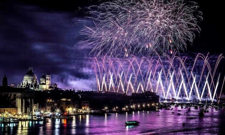 Lungo le sponde dell’isola residenti e visitatori festeggiano, mentre il canale della Giudecca si anima delle innumerevoli barche che si radunano per ammirare gli spettacolari fuochi d’artificio.