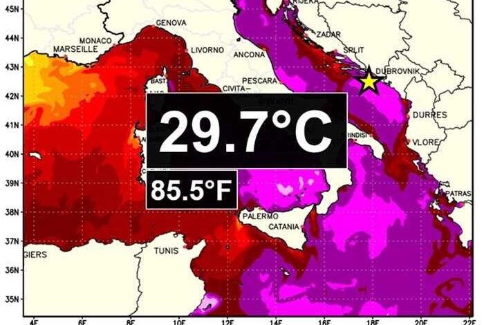 Il rialzo deciso delle temperature che si è verificato nelle ultime due settimane anche sul Nord Italia sta portando ad una prolungata ondata di calore che si ripercuote anche sulle temperature superficiali del Mare Adriatico, un bacino con un lento ricambio d’acqua e con poca profondità e questo facilita l’aumento della temperatura delle acque in superficie.
