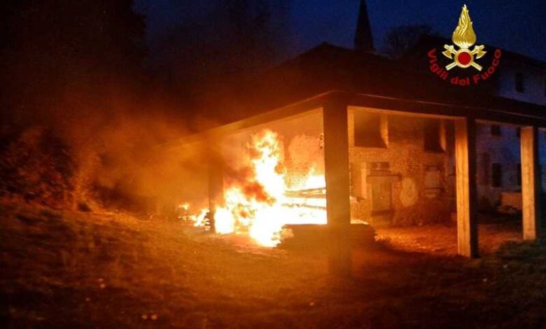 I Vigili del fuoco sono stati a lungo impegnati per un incendio scoppiato intorno alle 16:45, sotto la tettoia di un casolare in Via Santa Maria in Colle a Montebelluna.
