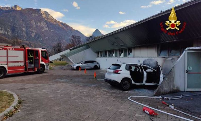 I vigili del fuoco arrivati da Belluno hanno spento le fiamme dell’auto parcheggiata a ridosso del muro della piscina, mentre l’impianto era già stato evacuato a scopo cautelativo.