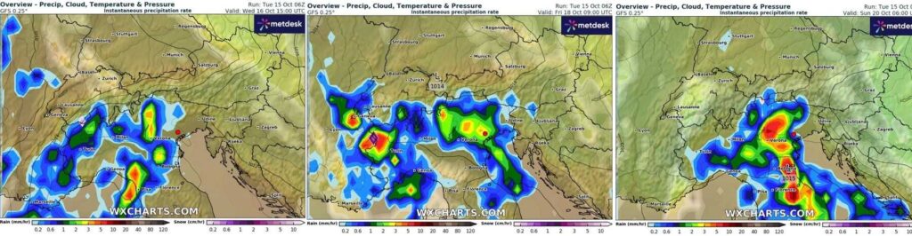 Due le fasi previste, la prima, dalla serata di mercoledì, che interesserà maggiormente la parte Ovest del Veneto, una seconda, più marcata, tra la serata di giovedì e la mattinata di venerdì, con un fine settimana di maltempo diffuso, oltre a un calo termico di circa 6-8 °C rispetto ai valori che si registrano oggi. Dunque, nel fine settimana, le temperature rientreranno nella norma del periodo.