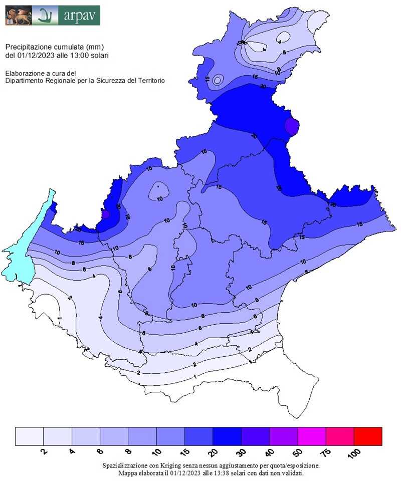In pianura le precipitazioni stanno interessando in particolare la parte orientale del Veneto e i quantitativi maggiori sulla fascia pedemontana e prealpina.