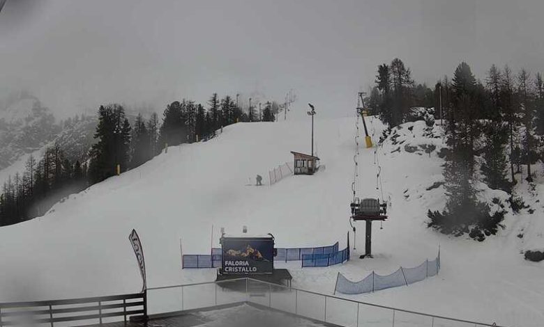 Impianti aperti come in Faloria (vedi foto), ma scarsa la presenza di sciatori a causa delle condizioni meteo non favorevoli.