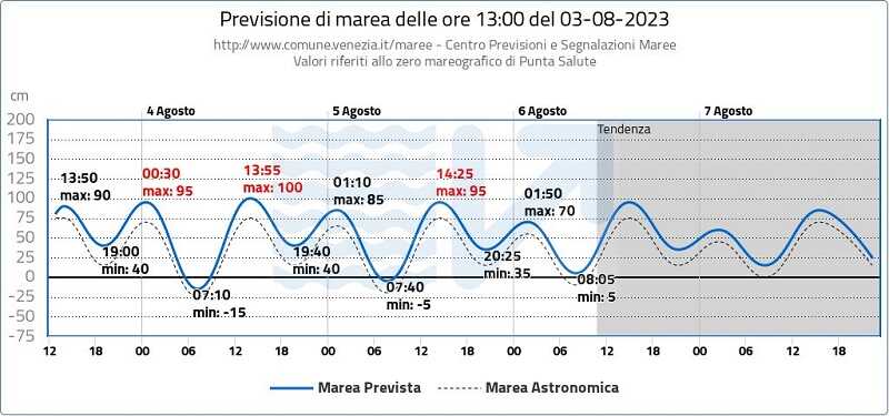 A causa della presenza di forti venti, è prevista una marea di 100cm alle ore 13:55. Piazza San Marco finirà sotto acqua.