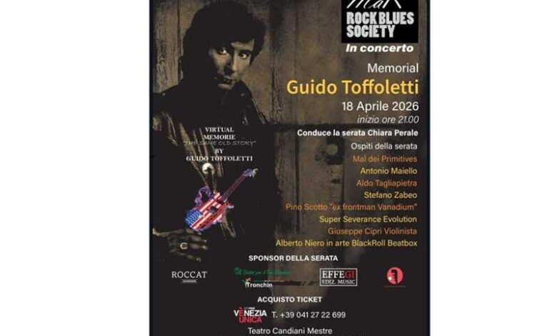 Al Memorial Toffoletti, condotto da Chiara Perale, assieme ai compagni di avventura di Guido nella sua Blues Society, Stefano Zabeo e Max Iannantuono con la sua Super Severance Evolution, saranno di scena una star anni Sessanta come Mal dei Primitives, Aldo Tagliapietra leggendaria voce delle Orme, Pino Scotto già frontman dei Vanadium, un grande violinista rock come Giuseppe Ciprì e pure il maestro Antonio Maiello, che nella coppia “Antonio e Marcello” fu a lungo mattatore con Arbore in “Quelli della Notte”.