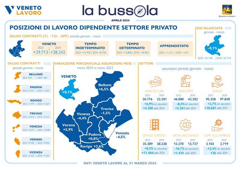 Mercato del lavoro veneto nel mese di marzo + 17.800 posti di lavoro, il turismo fa da traino