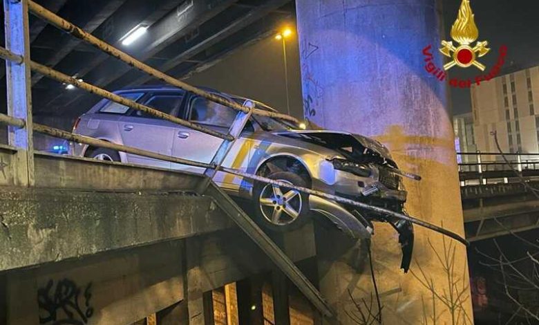 Mestre: auto sfonda guardrail e rimane in bilico sul cavalcavia Vempa dove ad ottobre ci fù il tragico volo del bus