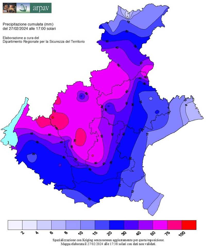 Lo indica il sito dell’agenzia ambientale Arpav, sulla base degli accumuli finora registrati: 10-20 centimetri sulle Dolomiti e 30 centimetri sulle Dolomiti meridionali, alle quote di 2.000 metri.