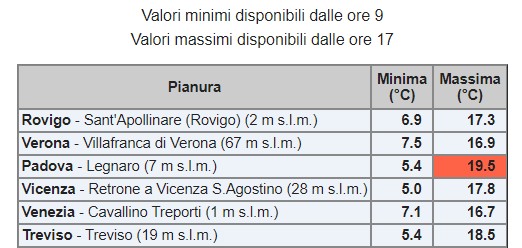 Dopo una giornata decisamente primaverile con le temperature che hanno sfiorato i 20° in pianura, 19,5° Padova e 18,5° Treviso, deciso peggioramento in serata con l’arrivo di una depressione che porterà copiose nevicate sulle Alpi.