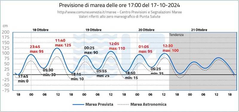Venerdì 18 ottobre, sono previsti 125cm alle ore 11:40. Verranno attivate le barriere mobili del MOSE.