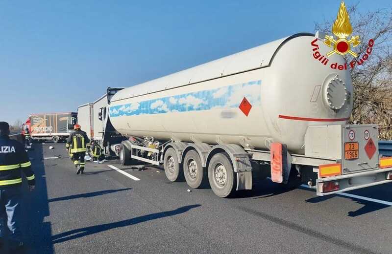 Ha visto coinvolti tre mezzi pesanti, tra cui una cisterna di gas, fortunatamente vuota.
