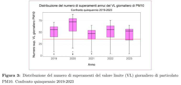 Viene inoltre evidenziato che nell’ultimo anno il numero medio di superamenti registrati è stato generalmente inferiore a quelli conteggiati nel 2022, e in linea con il 2021, uno degli anni con i livelli di PM10 più bassi.