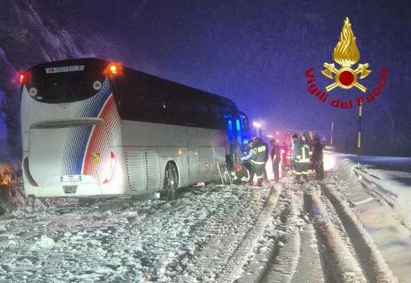 La scorsa notte, a partire dalle 3:00 di domenica, i vigili del fuoco sono intervenuti lungo la strada del Passo Fedaia, nel comune di Rocca Pietore, per soccorrere un’auto e due autobus rimasti bloccati a causa di un’abbondante nevicata.