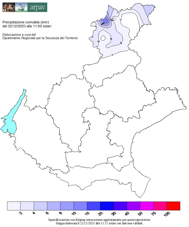 Sui settori dolomitici invece i forti venti da nord trasportano solo deboli nevicate che si depositano sulle Dolomiti più a nord.