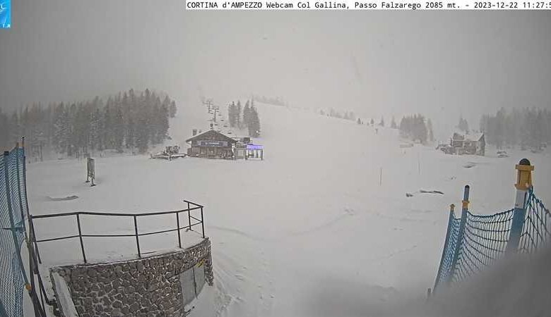 Le centraline Arpav ci stanno dando una mano e ci raccontano che attorno ai 2 mila metri sono caduti mediamente 10 centimetri di neve fresca, come testimonia il rilevamento di Passo Falzarego e la foto dei vicini impianti di Col Gallina.