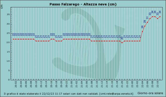Le nostre vallate sono al momento risparmiate dai venti di foen come testimoniano le due centraline messa a confronto: Faloria -5,5° a 2.200 metri di quota e +2,2° di Cortina a 1.200 metri di altitudine, il tradizionale rapporto di 0.6° ogni 100 metri è rispettato in pieno.