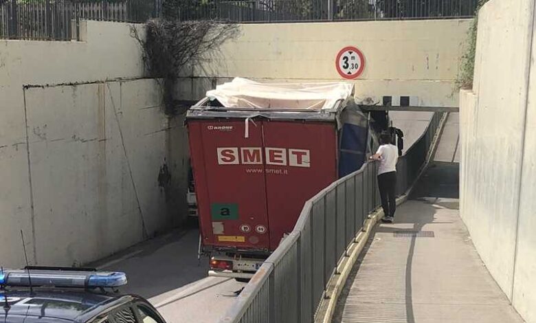 Oderzo: bilico incastrato nel sottopasso di via Spinè. VVF all’opera per rumuoverlo