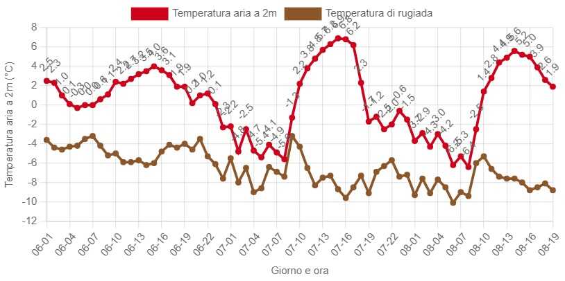 Oltre alla consueta Piana di Marcesina che ha registrato -22°, tutte le centraline posizionate in quota hanno registrato temperature che si sono avvicinate ai -20.