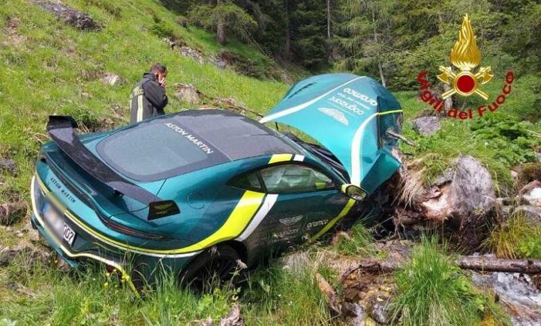 Passo Giau: vola in un dirupo con l’Aston Martin. Conducente indenne, auto da buttare