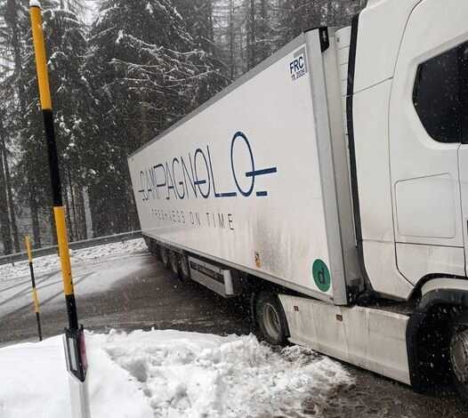 E’ stato riaperto dopo 6 ore, il Passo San Pellegrino interrotto da un autoarticolato che è finito di traverso in un tornante.