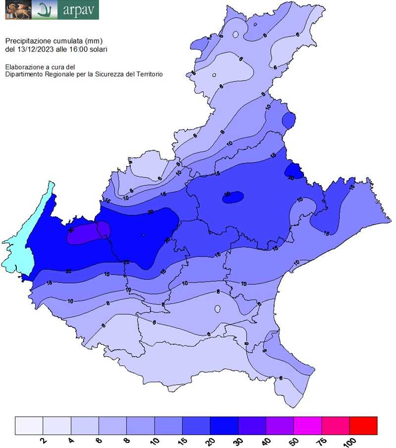 In pianura, a causa dell’alta pressione, il freddo sarà schiacciato al suolo per cui non saranno superati i 10°.