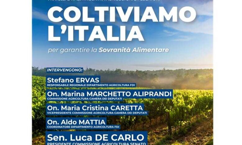 L’evento, organizzato dal gruppo parlamentare di Fratelli d’Italia alla Camera dei Deputati, vedrà la partecipazione del Sen. Luca De Carlo (Presidente della Commissione Agricoltura del Senato e Coordinatore regionale di FDI), dell’On. Marina Marchetto-Aliprandi (membro della Commissione Agricoltura della Camera), dell’On. Maria Cristina Caretta (Vicepresidente della Commissione Agricoltura della Camera), dell’On. Aldo Mattia (Coordinatore del Dipartimento Agricoltura di FDI) e di Stefano Ervas (Responsabile regionale Dipartimento Agricoltura di FDI). Sarà inoltre presente anche Claudio Borgia (Presidente provinciale di Fratelli d’Italia Treviso).