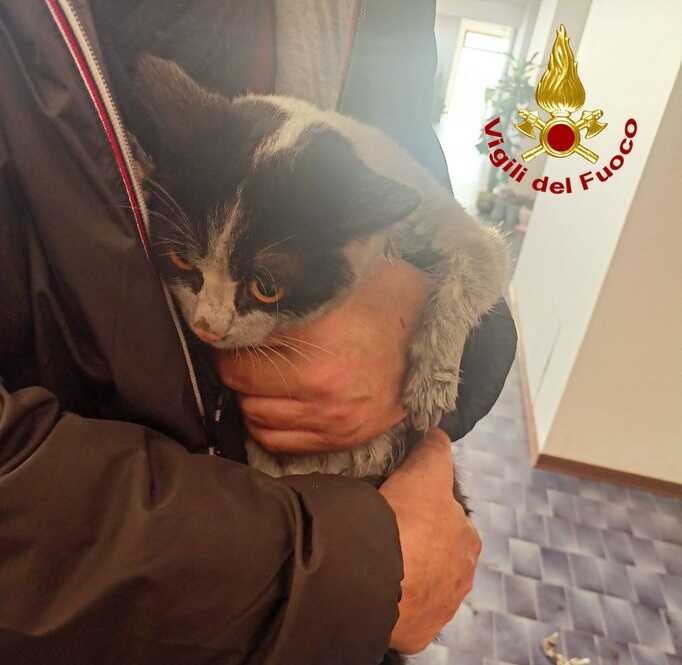 Durante le operazioni di spegnimento i Vigili del fuoco hanno trovato e messo in salvo un gatto che è stato affidato ad un conoscente dell’inquilina dell’appartamento interessato dall’incendio.