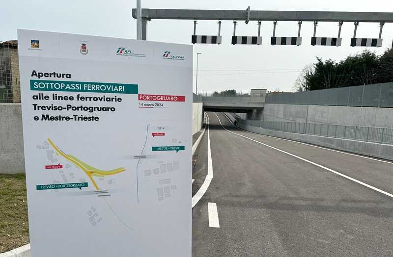 “Aprono oggi al traffico due nuovi sottopassi sulle linee ferroviarie Treviso-Portogruaro e Mestre-Trieste, per un investimento complessivo di 14,6 milioni di euro, di cui 8,1 milioni finanziati dalla Regione, 2,3 milioni dal Comune di Portogruaro e i restanti 4,2 milioni da Rete Ferroviaria Italiana”.