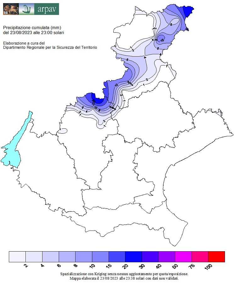 Le centraline meteo dell’Arpav hanno rilevato 30mm a Sappada, 25 a Santo Stefano e poco meno di 20mm in Centro Cadore.