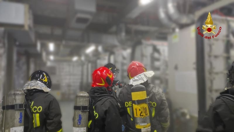 20 gli operatori che sono entrati nella nave, lunga 230 metri, supportando le operazioni di spegnimento iniziate dai marinai del servizio anticendio.