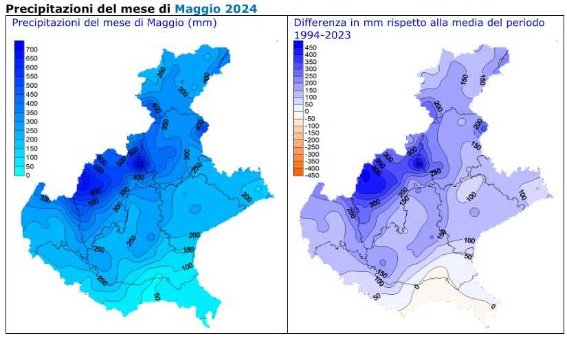 Dal 1994 è il maggio più piovoso, seguito dal 2019 (237 mm) e dal 2013 (235 mm).
