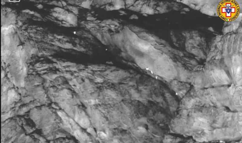 La squadra è quindi scesa una sessantina di metri e ha raggiunto per prima la ragazza, che era ferma più in alto di 20 metri rispetto al compagno, probabilmente scivolato su una ripida placca.