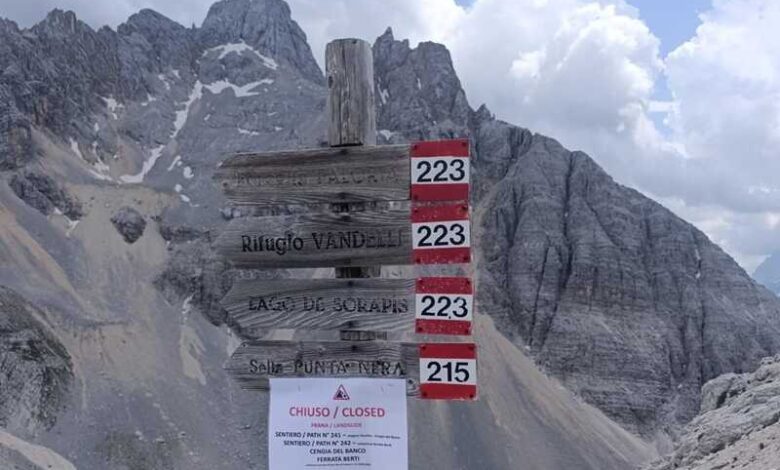 Benché infatti sia stata chiusa, anche con un’ordinanza del sindaco di San Vito di Cadore, in entrambi i punti di accesso, da Cortina e San Vito, e sebbene siano stati posizionati cartelli di avviso, continua il passaggio sull’itinerario attrezzato. Oggi alle 15.30 un escursionista inglese di 60 anni, partito in mattinata dal Passo Tre Croci, ha chiamato dicendo di trovarsi sulla Ferrata Berti e che cadevano sassi dall’alto. Risaliti alla sua posizione teorica, gli è stato detto di non spostarsi dal punto riparato in cui si trovava e di attendere l’arrivo dei soccorsi, poiché al momento la montagna era nascosta dalle nuvole. Per decidere la strategia del recupero era necessaria la posizione esatta dell’escursionista, si è dovuto quindi attendere che si alzassero le nubi. Falco 2, arrivato per un eventuale ricognizione e atterrato in attesa, è poi stato dirottato su un’altra missione. Quando le nuvole si sono spostate, il Soccorso alpino di San Vito di Cadore ha purtroppo appurato che l’escursionista si trovava proprio al centro della frana, a 2.400 metri di altitudine.