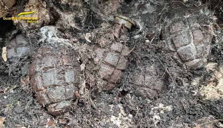Le Fiamme Gialle di Belluno, hanno rinvenuto in località Val Bruna sul Nevegal, otto bombe a mano risalenti al 2° conflitto mondiale.