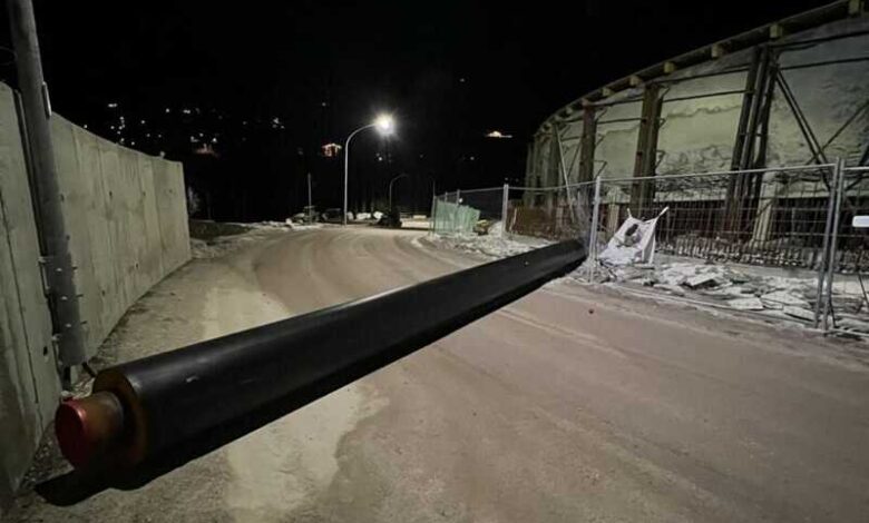 Un tubo di refrigerazione è stato staccato e ritrovato in mezzo alla strada, bloccando la circolazione stradale e creando notevoli disagi ai lavori del cantiere, anche in vista del sopralluogo del Cio previsto lunedì 24 febbraio.