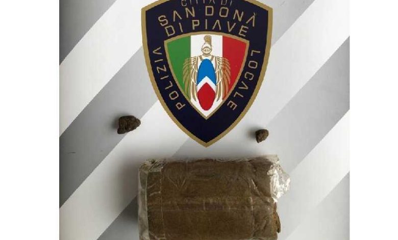 Agenti della Polizia Locale di San Donà di Piave hanno fermato in golena, un 17enne sandonatese trovato in possesso di un panetto di hashish del peso di circa 1 etto e di 2 involucri già confezionati dello stesso stupefacente pronti per la cessione.
