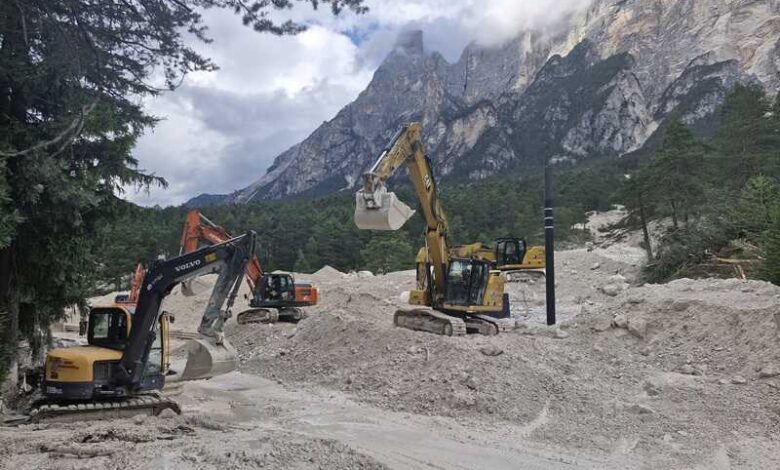 San Vito di Cadore: mezzi al lavoro per rimuovere l’ultima colata detritica sull’Alemagna