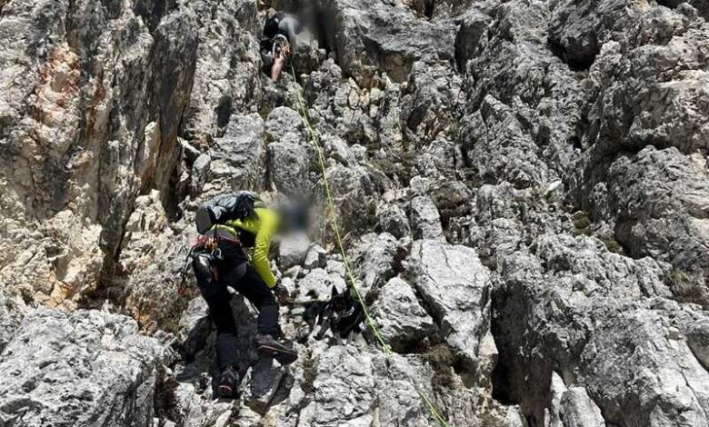 Sass de Stria: vanno in scalata e lasciano il cane ai piedi della parete. L’animale finisce incrodato. Recuparato dal Soccorso Alpino