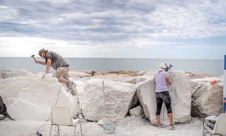 ScoglieraViva a Caorle: Tre artisti scolpiscono gli scogli a contatto con la gente