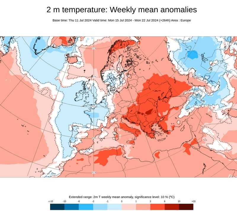 Tendenza. Tra il 15 e il 22 luglio ancora anticiclone e temperature ben al di sopra delle medie, in particolare sull’Italia centro-meridionale e sull’Europa orientale.