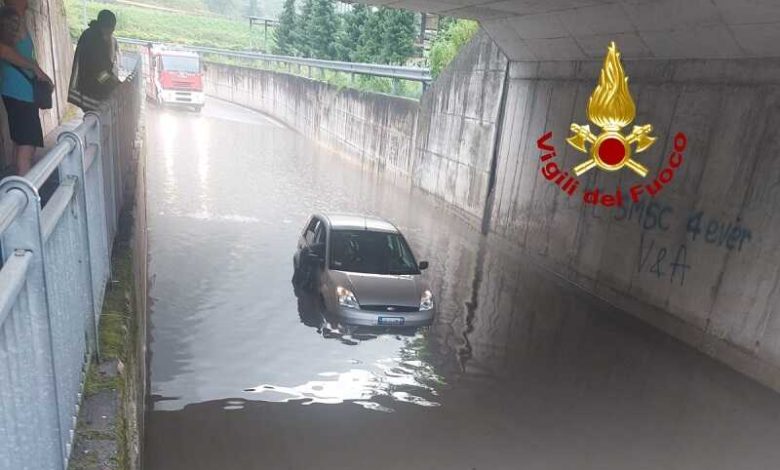 Sono dovuti intervenire i vigili del fuoco di Bassano del Grappa a togliere dall’impiccio l’automobilista finita quasi sommersa con il mezzo nel sottopassaggio, che si è riempito di acqua.